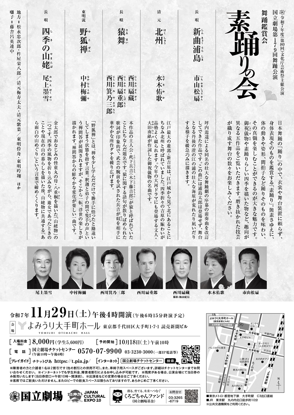 | 料金 | [均一]8,000円(学生5,600円) (税込・全席指定) ※障害者の方と介護者1名は2割引です(他の割引との併用不可)。また、車椅子用スペースがございます。 詳細はチケットセンターまでお問い合わせください。 |